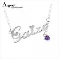 【ARGENT銀飾】名字手工訂製系列「純銀+垂吊愛心鑽-英文名字」純銀項鍊(名字下面垂吊愛心鑽)